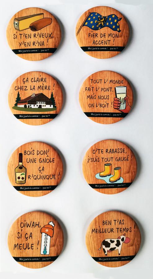 Magnets décapsuleurs 3,50€ l'unité 3 nouveaux arrivés pour Noël - Ces magnets décapsuleurs reprennent des citations du livre "Moi j'parle le comtois... pas toi ?"